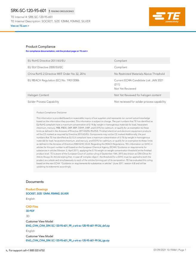 SRK Terminal TE Connectivity SRK-PC-120-50-601 TE DE SRK Terminal, 1 szt.