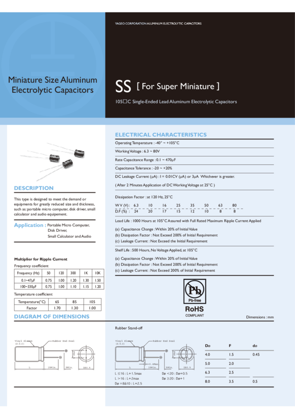 Cap Aluminum 47uF 16V 20% (5 X 7mm) Radial 2mm 75mA 1000h 105°C T/R