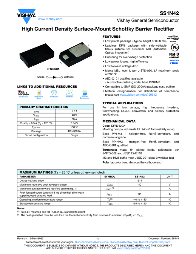 High Current Density Surface-Mount Schottky Barrier Rectifier