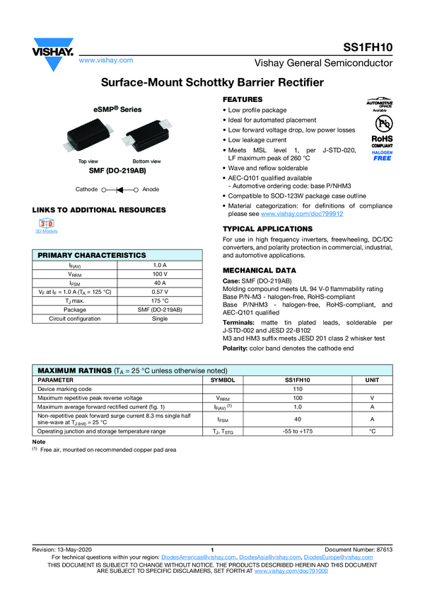 Low VF High Current Density Surface-Mount Schottky Barrier Rectifiers