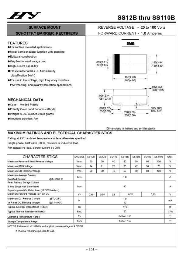 Dioda Schottky'ego Taiwan Semiconductor SS110 N/A N/A N/A U(RRM) 100 V