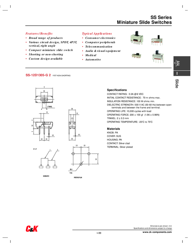 C & K Switches SS14D0839VG5PA 1 szt.