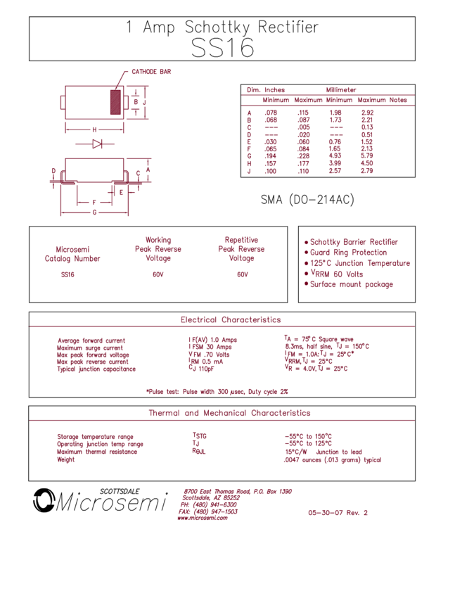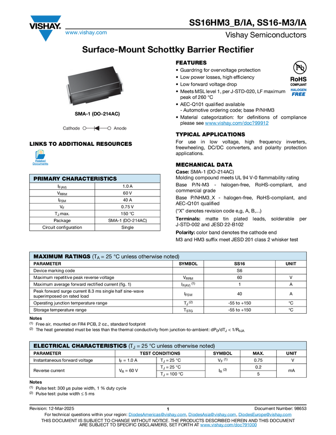 Dioda Schottky'ego Taiwan Semiconductor SS16M N/A N/A N/A U(RRM) 60 V
