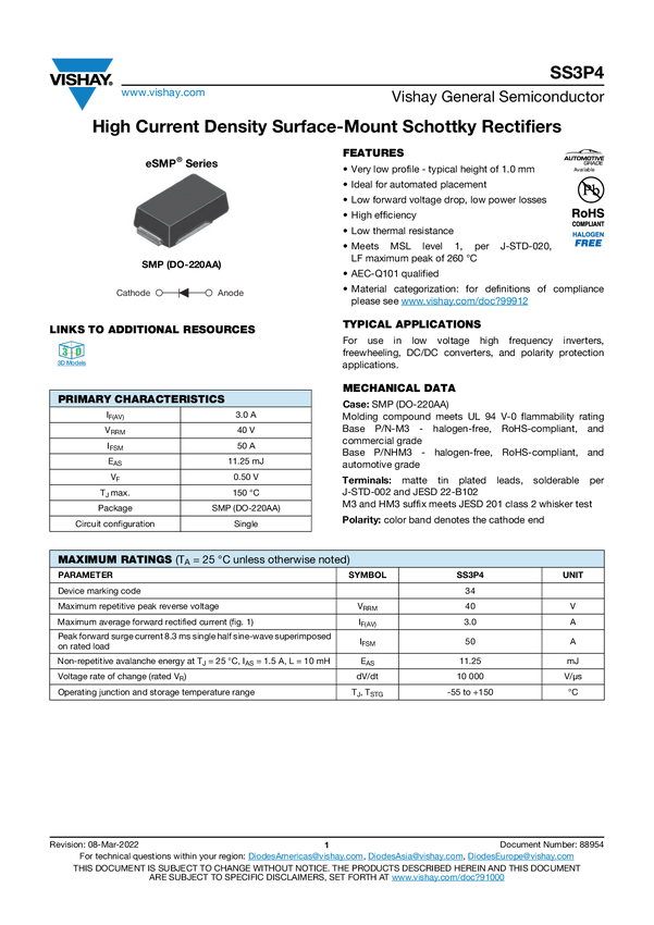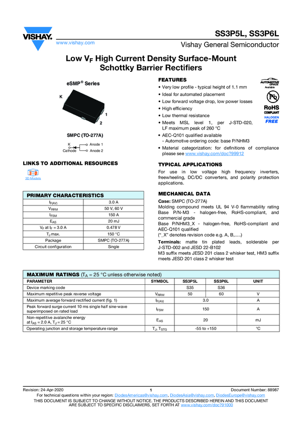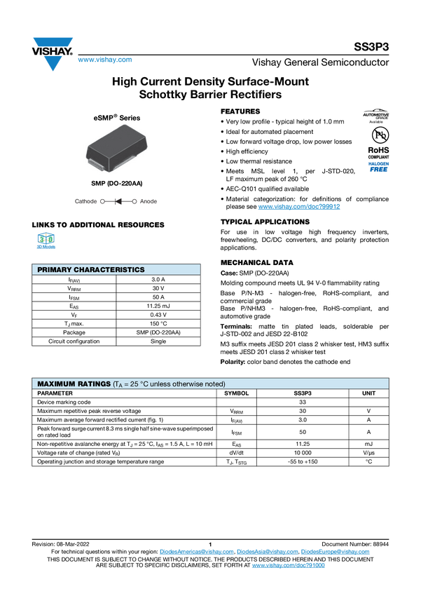Low VF High Current Density Surface-Mount Schottky Barrier Rectifiers