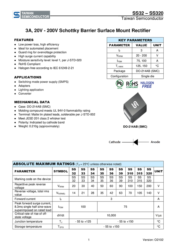 Dioda Schottky'ego Taiwan Semiconductor SS320 N/A N/A N/A