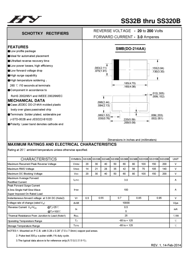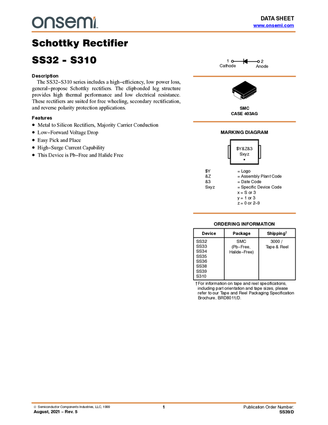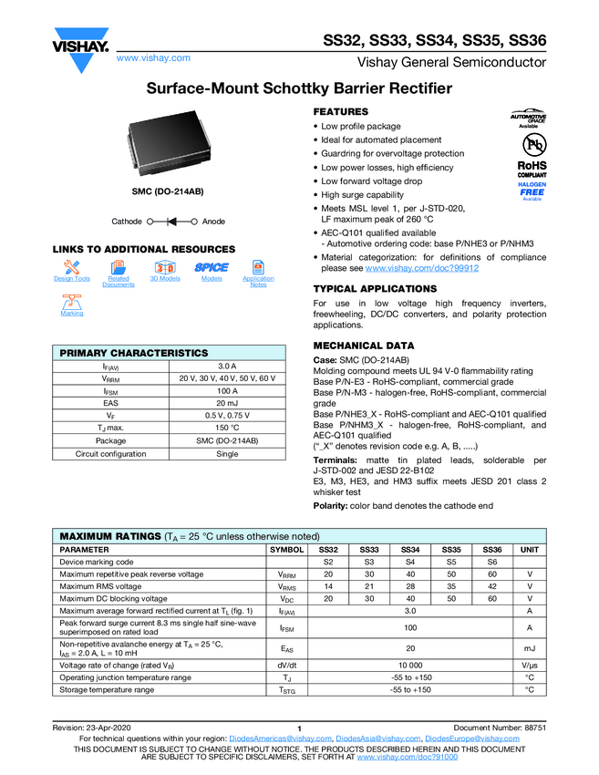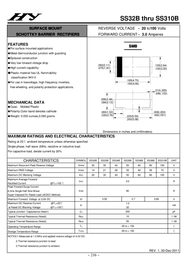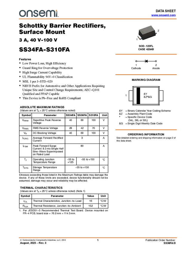 3 A, 40 V Surface Mount Schottky Barrier Rectifiers