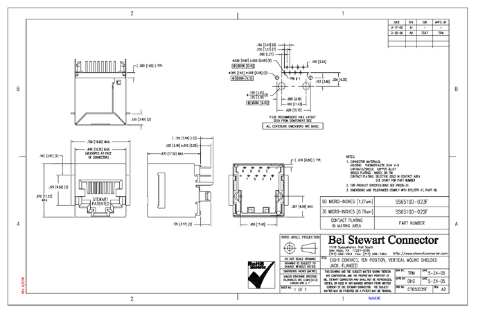 złącze żeńskie do wbudowania pionowego RJ45 BEL Stewart Connectors SS65100-022F Ilość styków: 10P8C 1 szt.