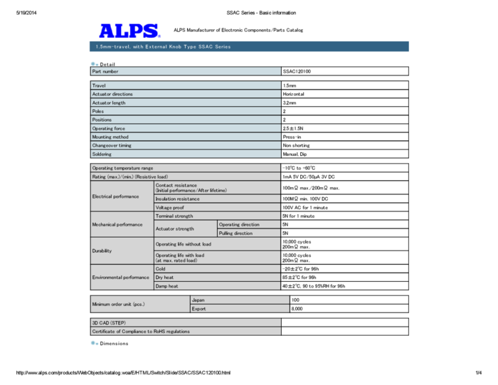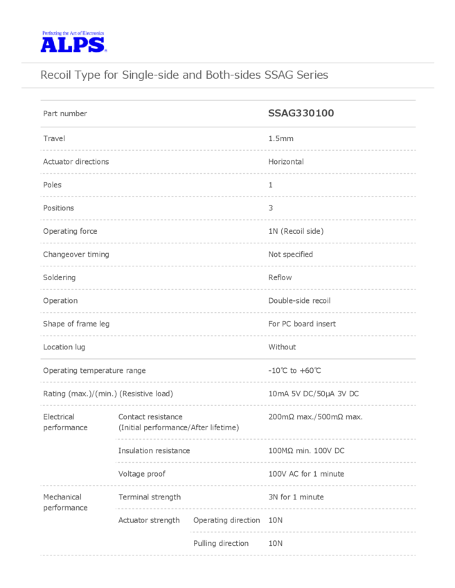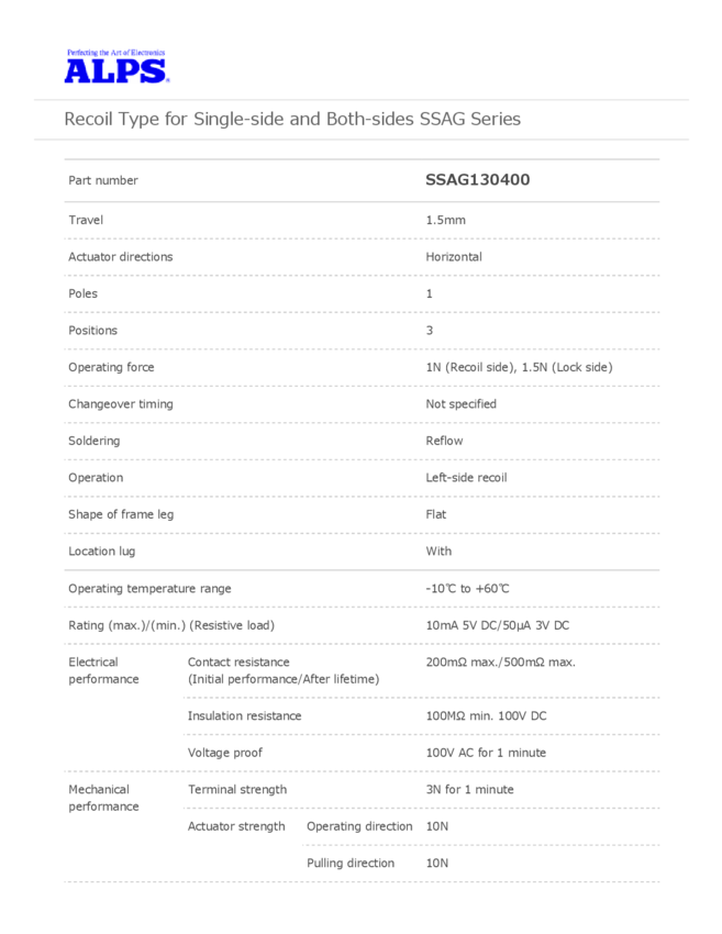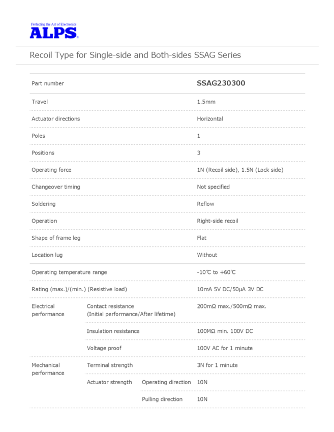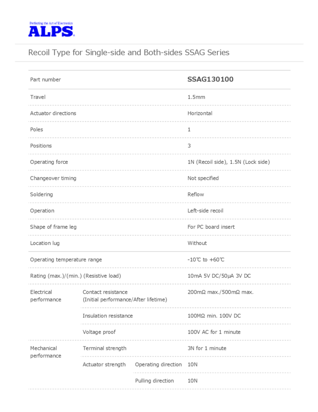 Switch Slide SP Side Slide 0.01A 5VDC 100000Cycle Gull Wing SMD T/R