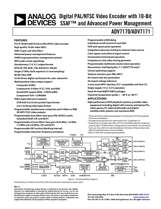 Digital PAL/NTSC Video Encoder with 10-Bit SSAF™ and Advanced Power Management & Macrovision 7.01