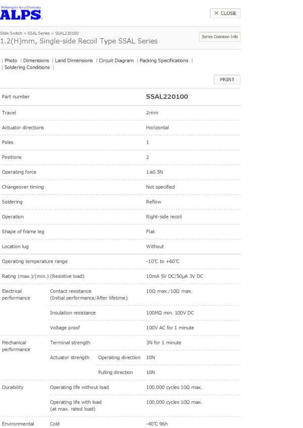 Switch Slide SP Side Slide 0.001A 5VDC 10000Cycle Gull Wing SMD T/R