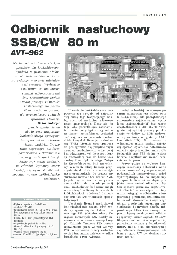 AVT962 Odbiornik nasłuchowy CW/SSB 80m