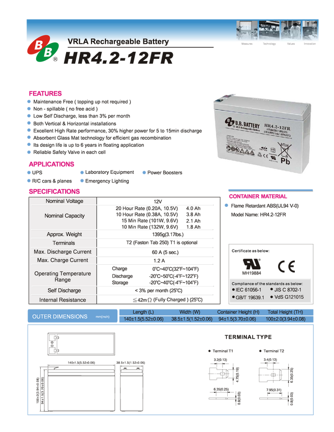 Akumulator ołowiowy SSB Electronic SBL4.5-12LV0 149456, AGM, 12 V, 4.5 Ah