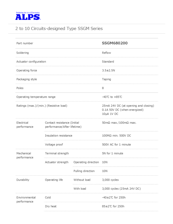 Switch DIP ON OFF SPST 8 Flush Slide 0.1A 50VDC Gull Wing 3000Cycle 2.54mm SMD Tape