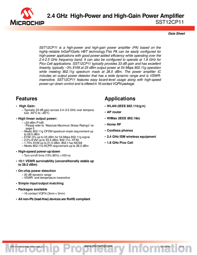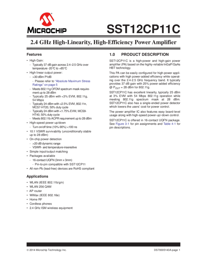 SST12CP11C-2.4 GHz High-Linearity, High-Efficiency Power Amplifier (04/24/2014)