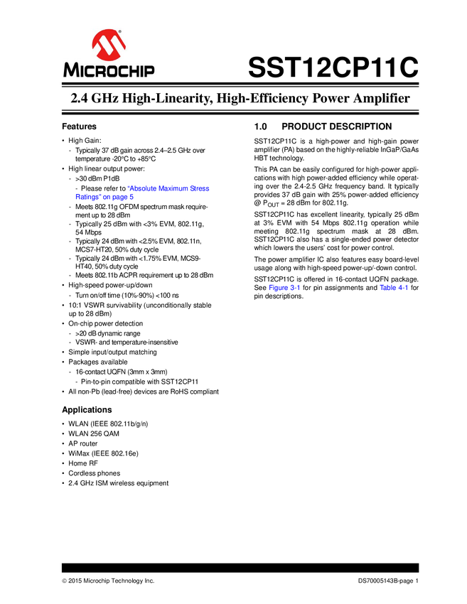 SST12CP11C-2.4 GHz High-Linearity, High-Efficiency Power Amplifier