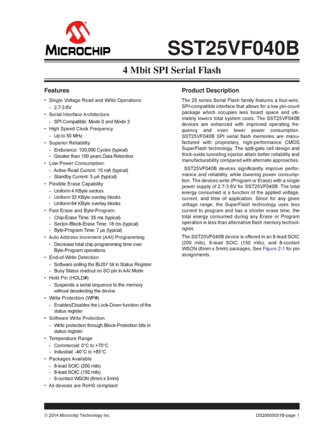 SST25VF040B Data Sheet - 4 Mbit SPI Serial Flash (02/21/2014)