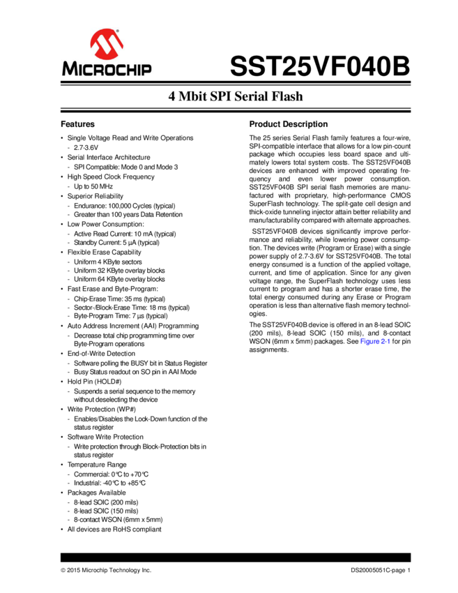 SST25VF040B Data Sheet - 4 Mbit SPI Serial Flash (06/30/2015)