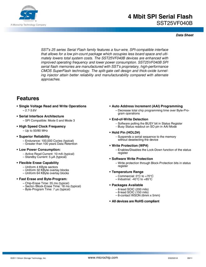 SST25VF040B Data Sheet - 4 Mbit SPI Serial Flash (09/23/2011)