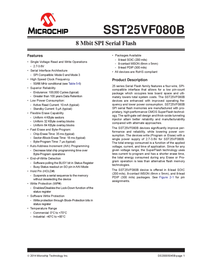 SST25VF080B Data Sheet - 8 Mbit SPI Serial Flash (06/18/2014)