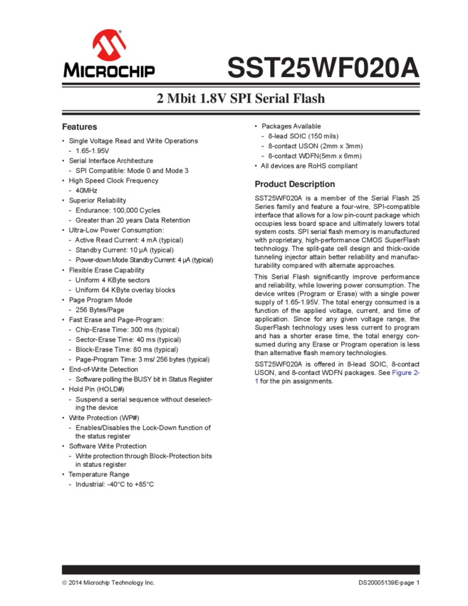 2 Mbit 1.8V SPI Serial Flash - SST25WF020A (10/10/2013)