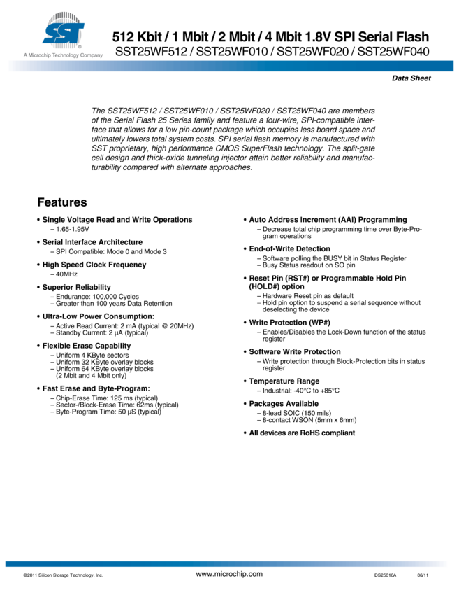 SST25WF512 / SST25WF010 / SST25WF020 / SST25WF040 Data Sheet (06/08/2011)