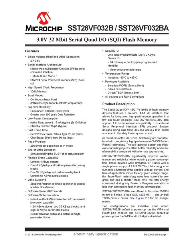SST26VF032B / SST26VF032BA 3.0V Serial Quad I/O (SQI) Flash Memory (04/28/2014)