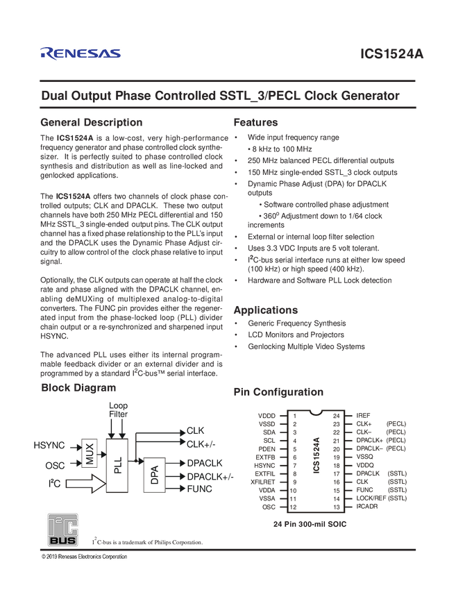 Dual Output Phase Controlled SSTL_3/PECL Clock Generator