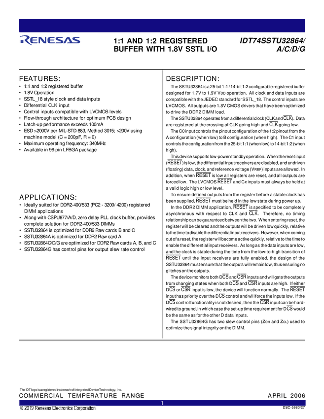 1:1 and 1:2 Registered Buffer with 1.8V SSTL I/O