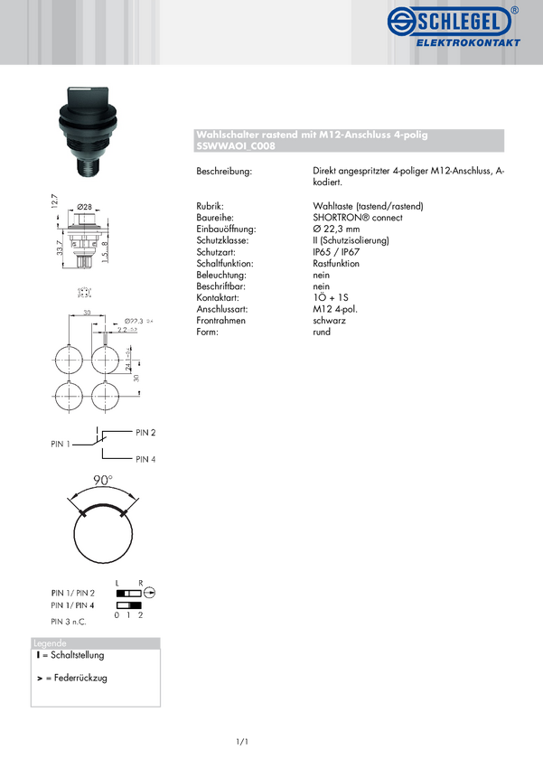 Schlegel SSWSTAOI_C008 SSWSTAOI_C008 Przełącznik ścienny manualne, przełącznik obrotowy 1 szt.