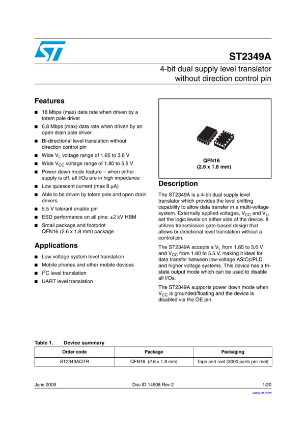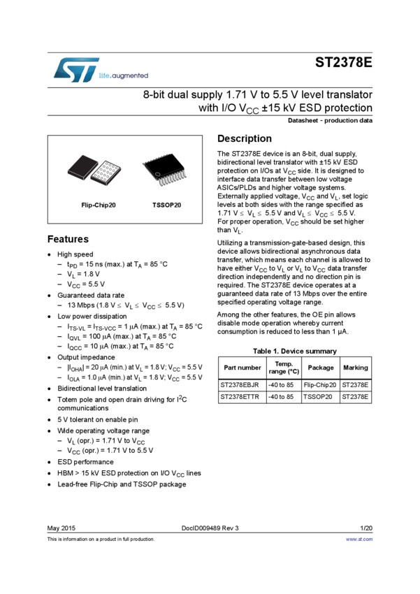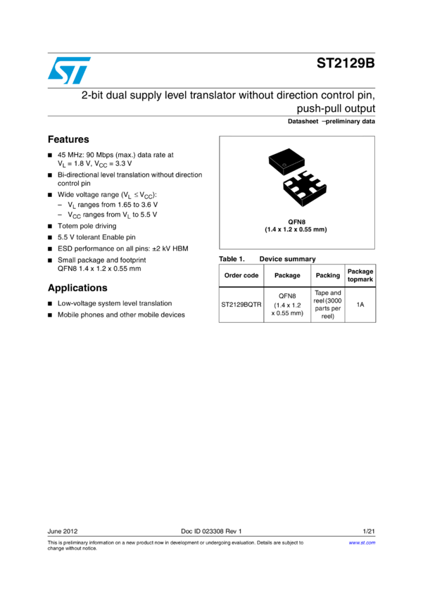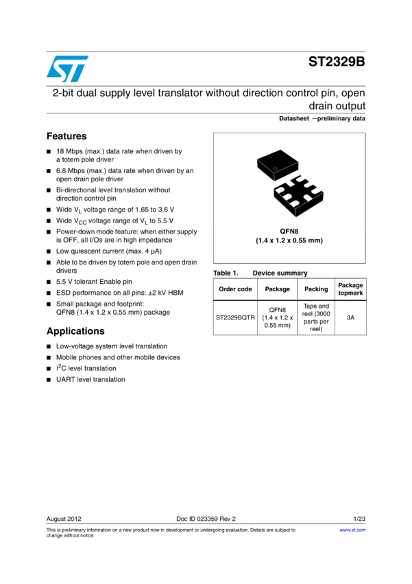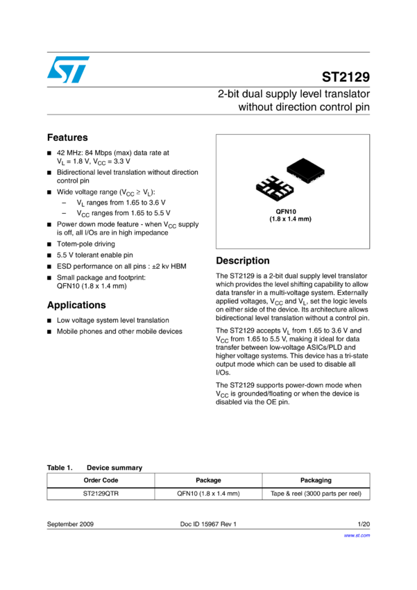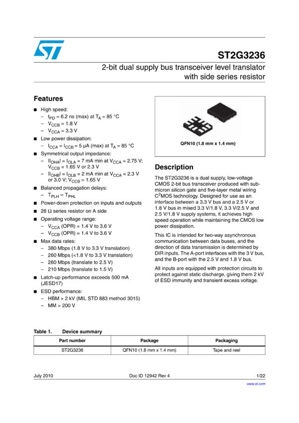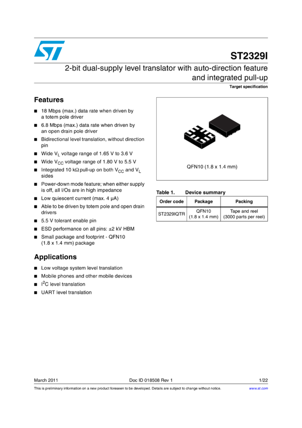 2-bit level translator for I2C/SPI with 10KOhm pull-up