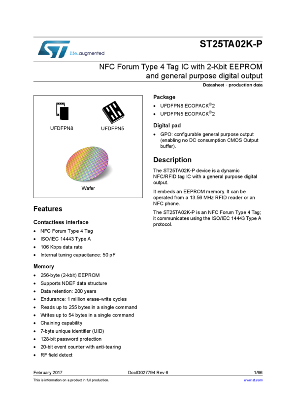 NFC Forum Type 4 Tag IC with 2-Kbit EEPROM and general purpose digital output