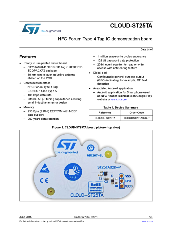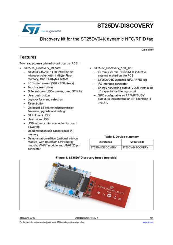 Discovery kit for ST25DV04 Dynamic NFC/RFID tag IC with fast transfer mode capability