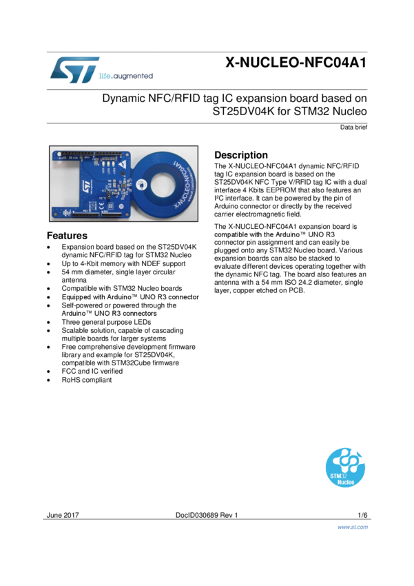Dynamic NFC/RFID tag IC expansion board based on ST25DV04K for STM32 Nucleo