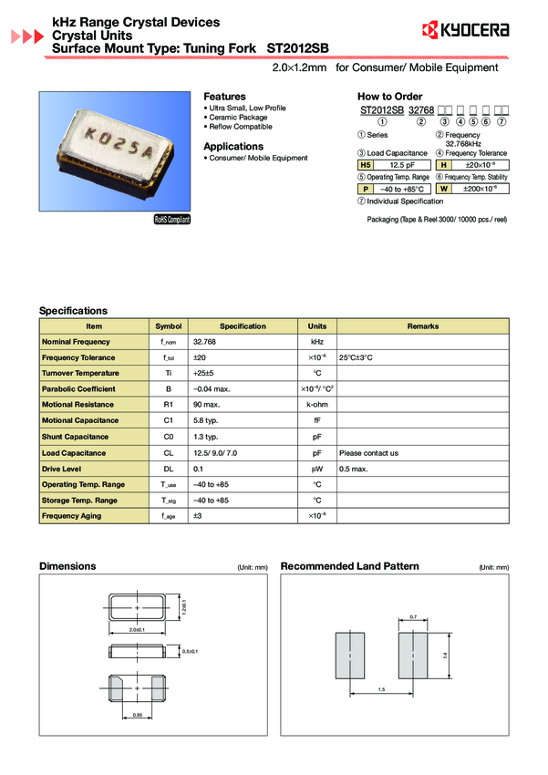 Crystal 0.032768MHz 7pF ±20ppm 2-Pin CSMD T/R