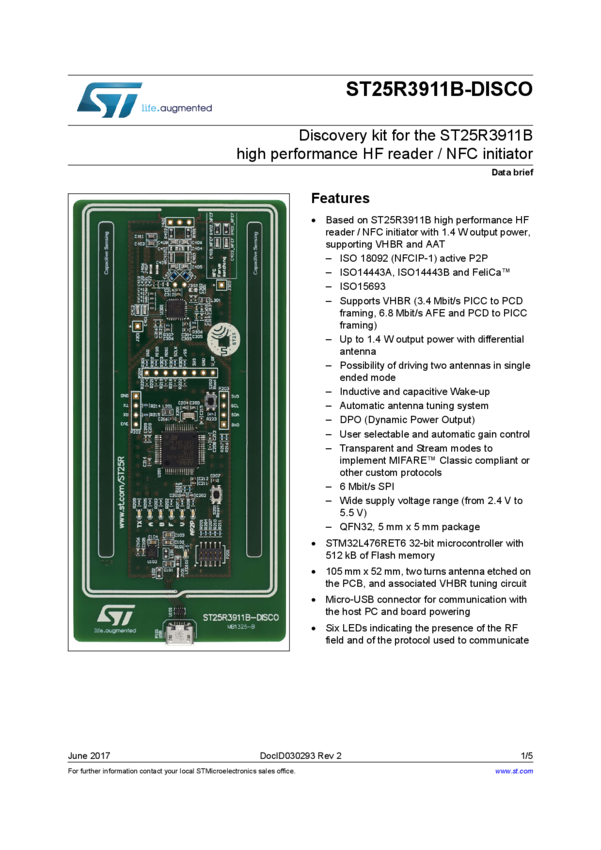 Discovery kit for ST25R3911B high performance HF reader / NFC initiator with 1.4 W output power, VHBR and AAT