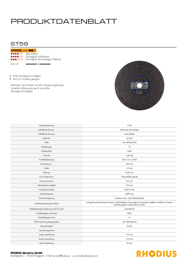 Tarcza tnąca Rhodius ST56 201457 10 szt.