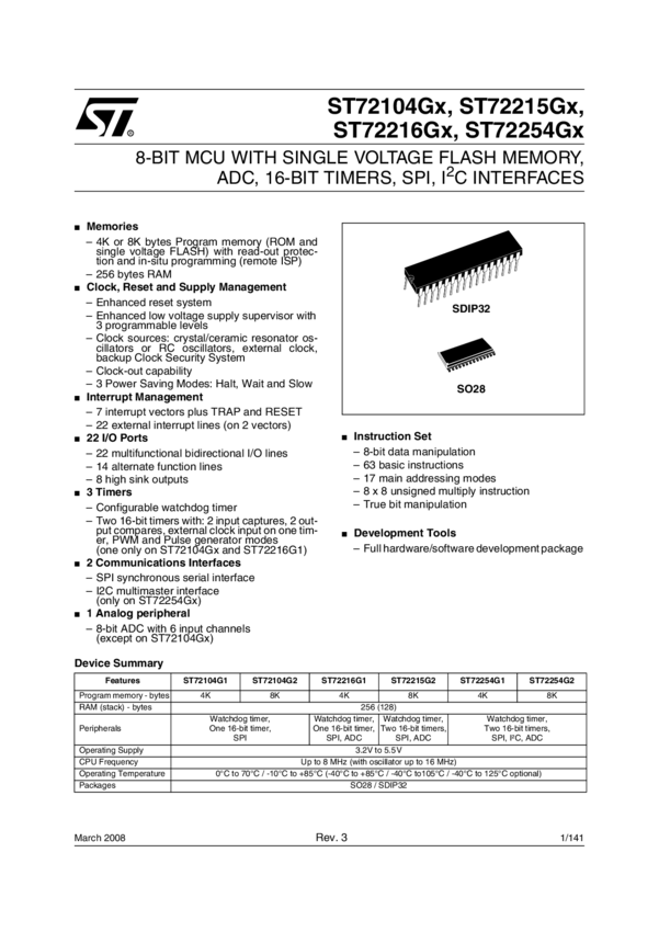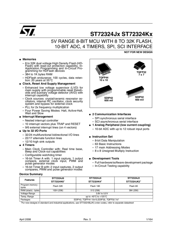 5V RANGE 8-BIT MCU WITH 8 TO 32K FLASH/ROM, 10-BIT ADC, 4 TIMERS, SPI, SCI INTERFACE