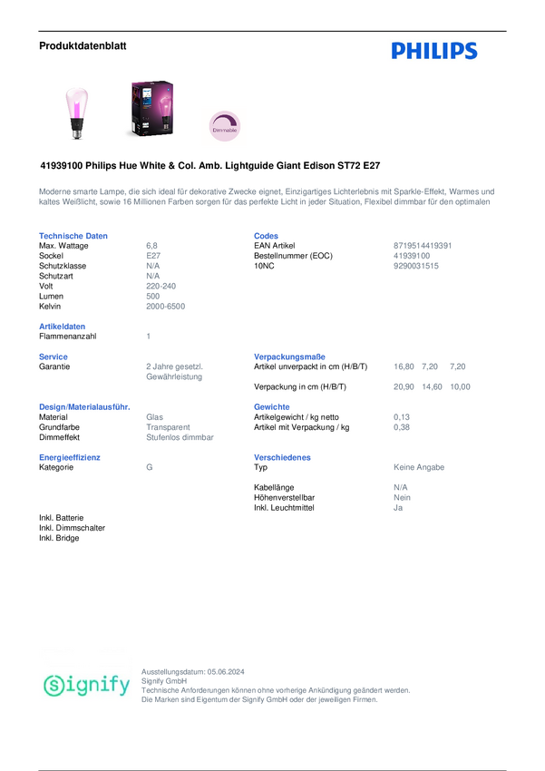 Żarówka LED Hue Hue LG ST72 929003151501 6.8 W