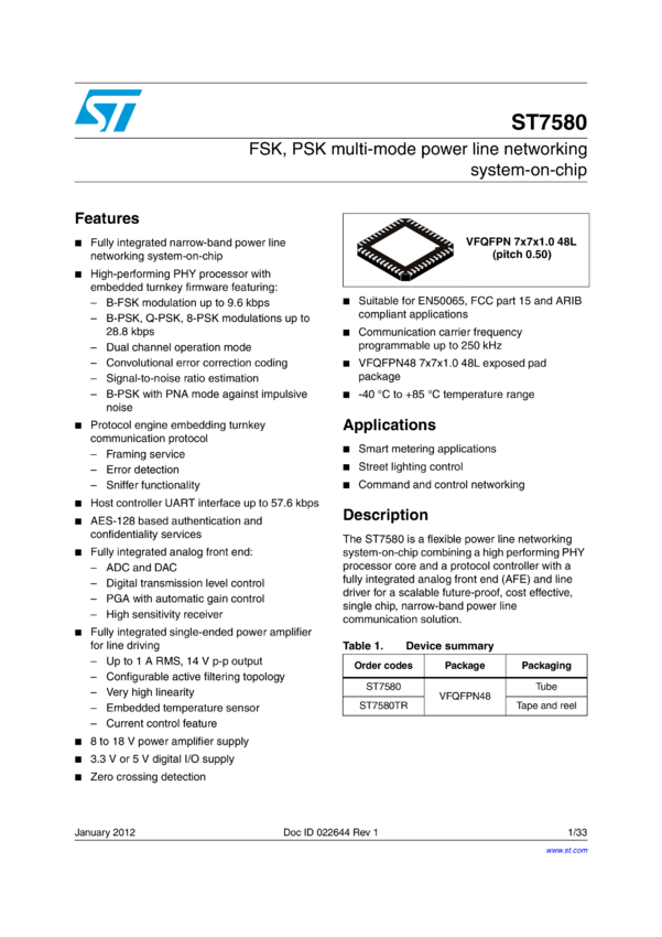 B-FSK, B-PSK, Q-PSK, 8-PSK Multi Mode Power Line Networking System on Chip