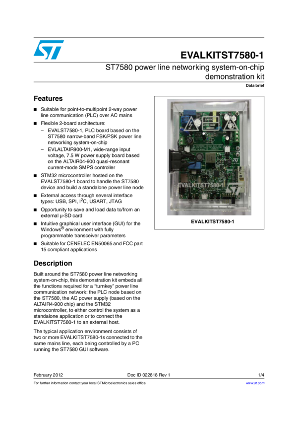 ST7580 Power Line Networking System On Chip Demonstration kit