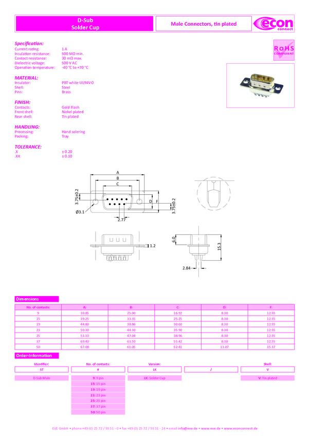 econ connect ST9PV Listwa męska D-Sub 180 ° Ilość styków: 9 piny lutownicze 1 szt.