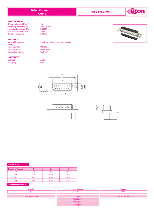 econ connect ST9CR Listwa męska D-Sub 180 ° Ilość styków: 9 zaciskane 1 szt.