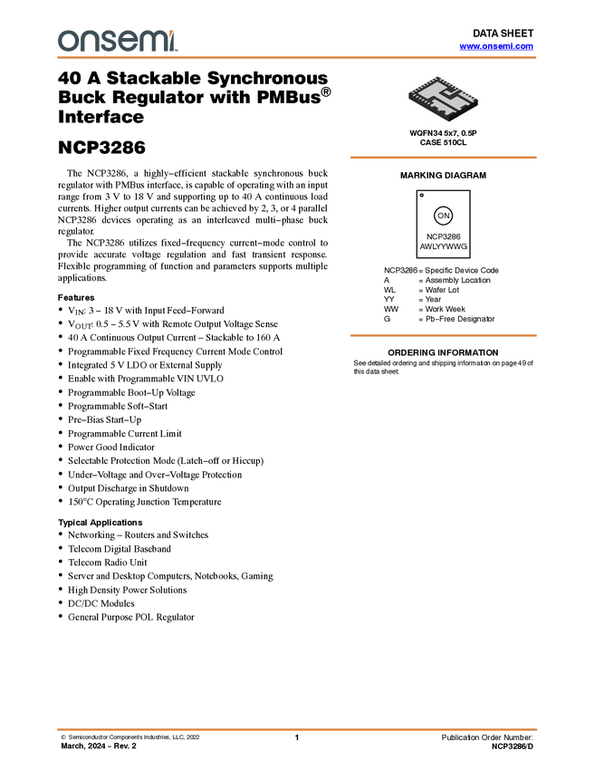 40A Stackable Synchronous Buck Regulator with PMBUS Interface