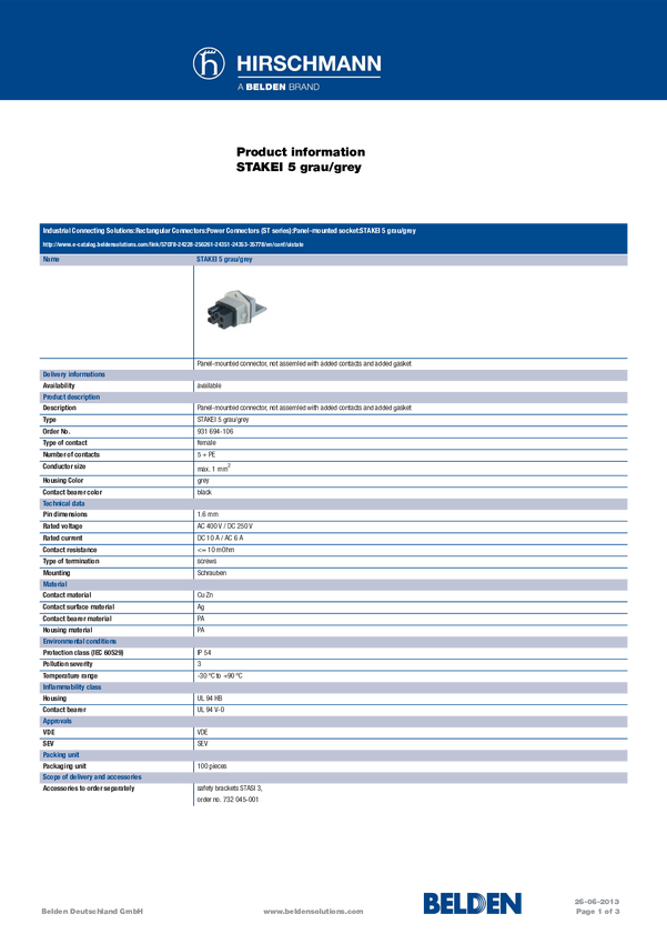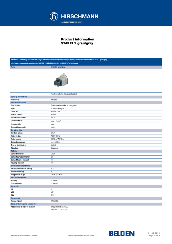 Hirschmann 930647106-200 Złącze męskie sieciowe STAKEI złącze żeńskie do wbudowania pionowego Łączna ilość styków: 2 + P