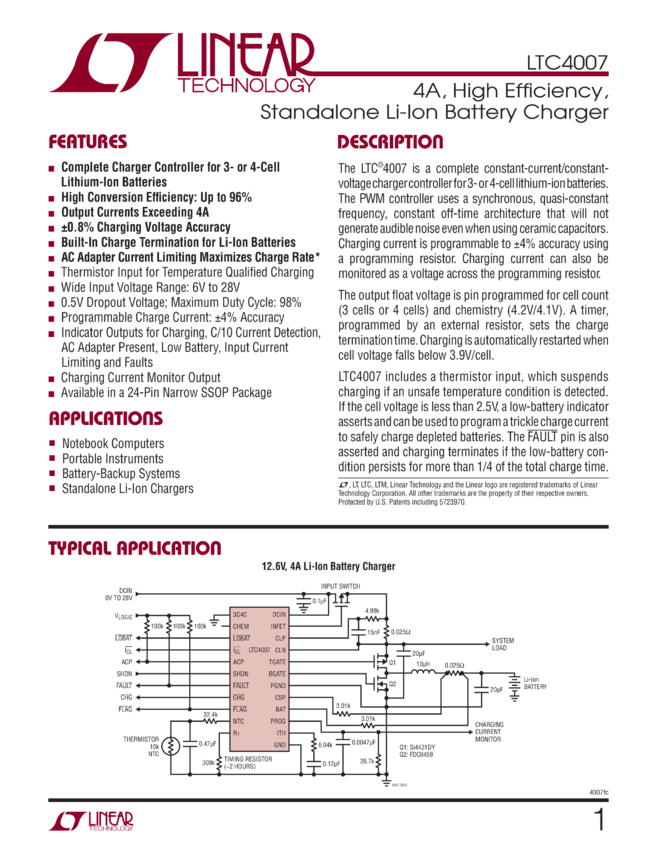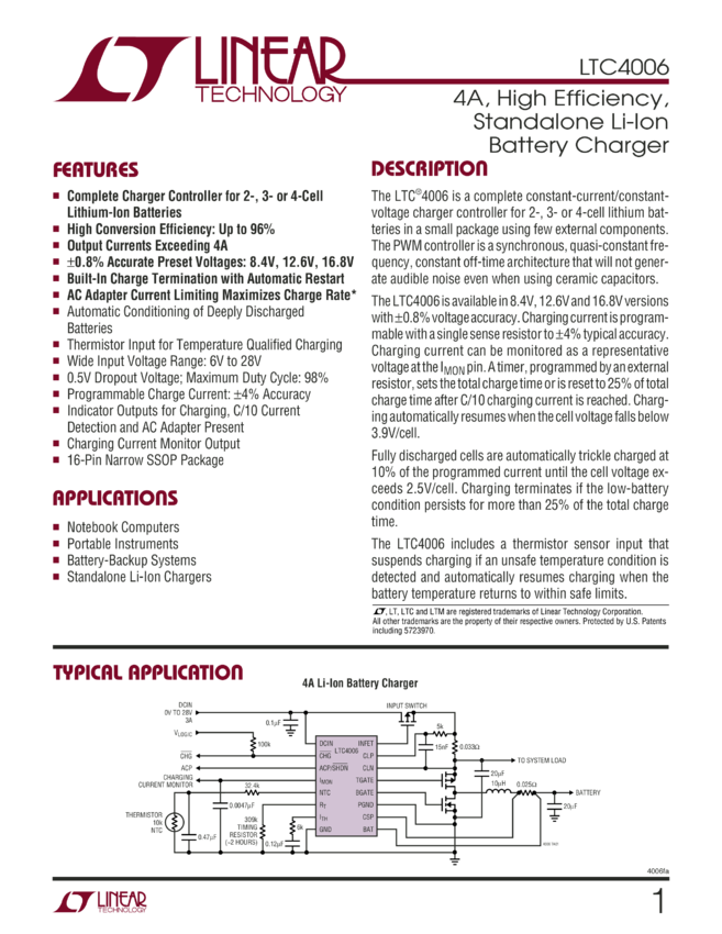 4A, High Efficiency, Standalone Li-Ion Battery Charger