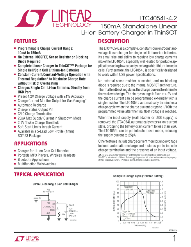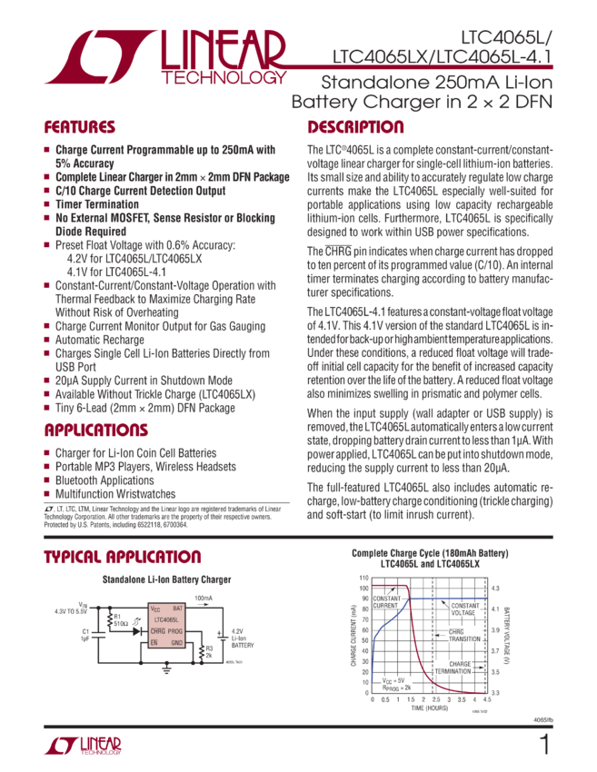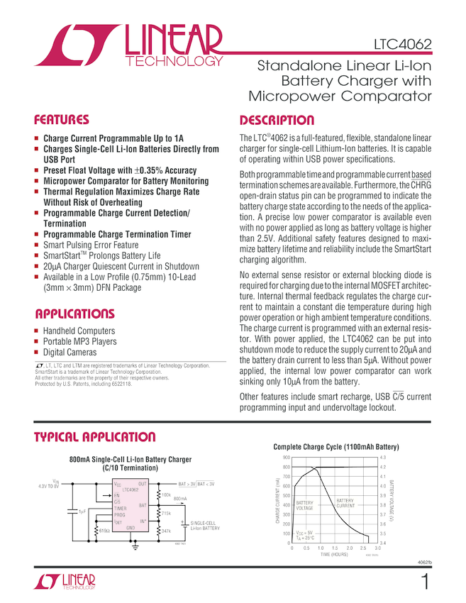 Standalone Linear Li-Ion Battery Charger with Micropower Comparator
