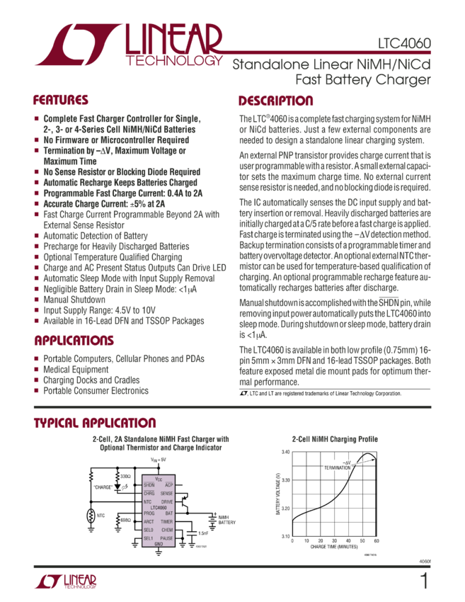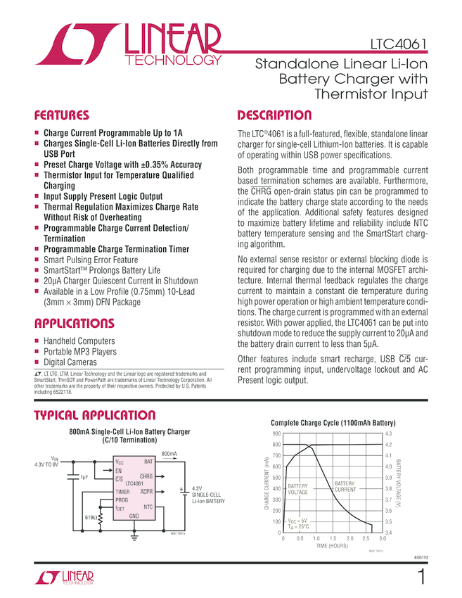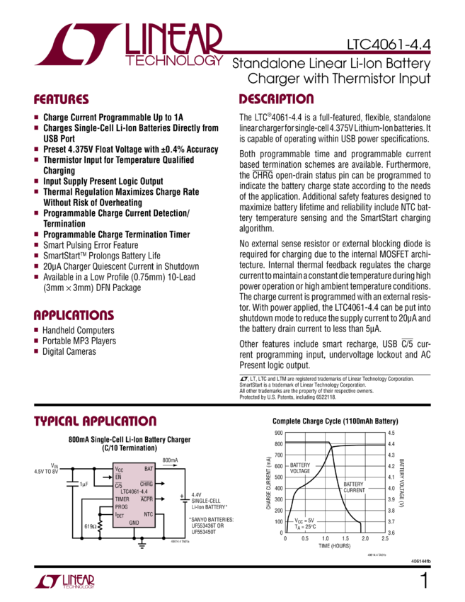 Standalone Linear Li-Ion Battery Charger with Thermistor Input