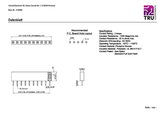 TRU COMPONENTS TC-2506428 Listwa kołkowa, żeńska, standardowa 1 szt.