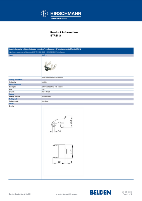 Zatrzask bezpiecznika Hirschmann STASI 2 732 044-000-200, 200 szt.