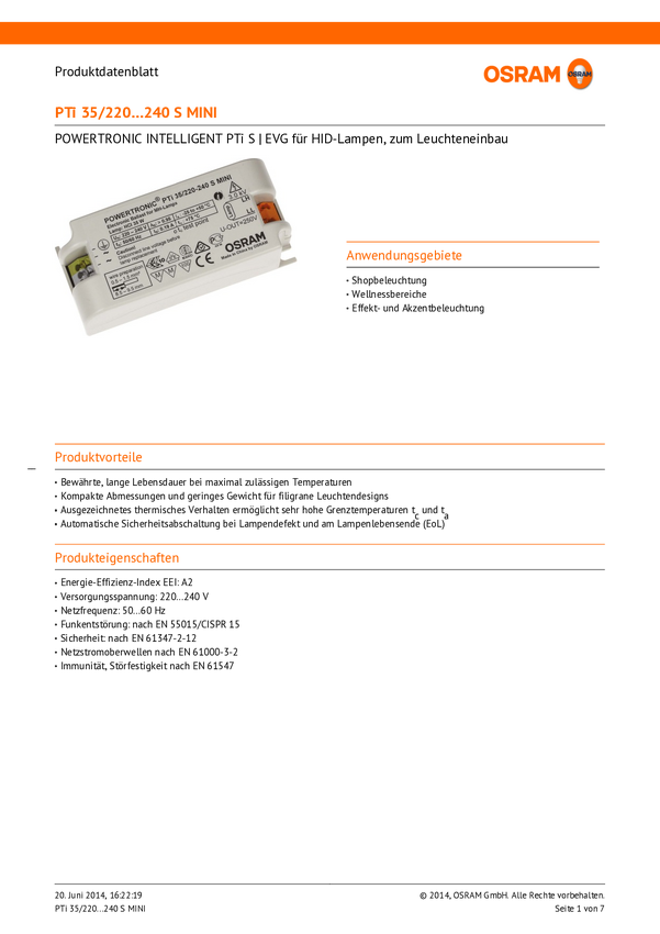 Statecznik EVG OSRAM HOMELIGHTING 4050300825564 1 szt.